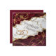 Celebra tu amor eterno con este exquisito diseño que presenta una rica textura de mármol burgundy y blanco, acentuada por vetas de lámina de oro falsas. El diseño muestra una silueta romántica de una novia y un novio dentro de un corazón floral, combinado con anillos de boda entrelazados. Perfecto para bodas, aniversarios o fiestas de compromiso que buscan un toque de elegancia moderna y lujo atemporal.