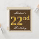 Invitación Elegante, marrón, falso oro 22 cumpleaños + nombre