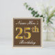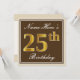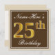 Invitación Elegante, marrón, falso oro 25 cumpleaños + nombre