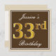 Invitación Elegante, marrón, falso oro 33 cumpleaños + nombre