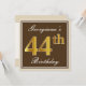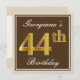 Invitación Elegante, marrón, falso oro 44 cumpleaños + nombre