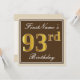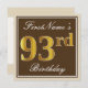 Invitación Elegante, marrón, falso oro 93 cumpleaños + nombre