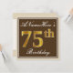 Invitación Elegante, marrón, oro falso 75 cumpleaños + nombre