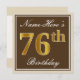 Invitación Elegante, marrón, oro falso 76 cumpleaños + nombre