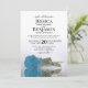 Esta invitación a la boda es elegante, exuberante y romántica. En él se ve una magnífica foto de un solo rosa azul cielo de tallo largo, turquesa o azul azulado que se encuentra en su costado reflejando en el agua las olas y las ondas. La parte posterior es de un color azul claro y mármol. Hermosa manera de invitar a tus amigos y familiares a compartir en tu día especial.