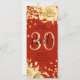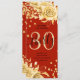 Elegante Purpurina Glam Gold Red Floral 30th Birthday Script 30th con texto de menú fiesta, arreglos florales, confeti purpurina y escritura moderna de tipografía.