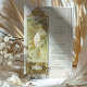 Esta elegante carta de menú de bodas muestra un impresionante diseño Art Nouveau inspirado en las obras de Alphonse Mucha. Con un exquisito ilustracion de una elegante mujer rodeada de intrincados detalles florales e inspirados en la naturaleza, este menú combina la belleza intemporal con la elegancia romántica. En la parte delantera se presenta el menú boda en una tipografía refinada, mientras que en la parte trasera se continúa con el arte inspirado en Mucha, con un elegante motivo floral y detalles bodas personalizados. Ideal para parejas que buscan una estética vintage pero sofisticada, esta carta le da un toque artístico a su celebración boda.