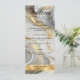 Carta de bodas formal y elegante con un diseño de mármol blanco, gris y dorado.