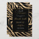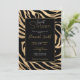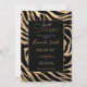 Invitación Elegante metal dorado Zebra Black Animal Print