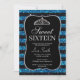 Purpurina negro y azul elegante, simple y moderna impresión, invitaciones a la fiesta de la celebración Sweet 16. Un diseño muy clásico y sofisticado para la elegante dama de cumpleaños. El texto se puede cambiar a cualquier cosa para que se ajuste a su evento. ¡Las fuentes, el color de la fuente y el texto son completamente personalizables! La forma y el tipo de papel se pueden personalizar para adaptarlo a su presupuesto y a su gusto.