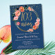 Celebra su cumpleaños número 103 con gracia usando esta elegante invitación azul y dorada en español. El diseño es de un refinado fondo azeache, realzado por un marco floral circular adornado con flores rosas suaves y acentos dorados. En el centro, los 103 años están bellamente presentados en caligrafía dorada, con purpurinas brillantes en cascada desde arriba. Personalizable completo, esta invitación está disponible en formatos imprimibles y digitales, lo que facilita compartirla a través de texto, correo electrónico o medios sociales. Perfecta para conmemorar un hito notable, esta moda y la invitación femenina harán que su cumpleaños sea verdaderamente memorable.