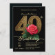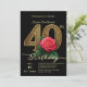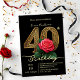 Invitación Elegante Moda Rosa Roja y Oro Número 40 cumpleaños