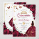 Invitación Elegante Moda Rosas de Borgoña Gold Quinceanera
