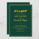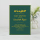 Esta elegante invitación de Baby Shower en color verde y dorado es perfecta para una Baby Shower moderna. el diseño sencillo incluye una elegante caligrafía dorada sobre un fondo verde.