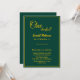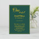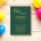 Esta elegante invitación al cumpleaños es perfecta para un cumpleaños moderno. el diseño es sencillo y elegante, con una caligrafía dorada sobre un fondo verde.