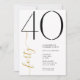 Invitación de Cumpleaños Elegante Moderno Cuarenta Negro Blanco 40