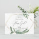 PROPUESTA DE INVITACIÓN PARA FIESTA DE BODAS | Formas geométricas con hojas verdes tropicales elegantes modernas. La parte trasera es un color coordinado complementario. Personalice el texto, el estilo de fuente, el color y el tamaño. Arte original creado para BarefootBride™ por © WhimsicalArtwork™ - Esta es parte de una suite completa de papelería de boda con papelería de boda, baby shower y otros eventos.