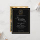 Invitación Elegante Monograma de Corona en Negro y Dorado par