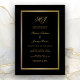 Invitación Elegante Monograma de Oro Negro Cena