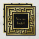 Invitación Elegante Monograma Dorado Brillo Art Déco Negro