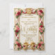 Establece el tono para tu unión formal de primavera con este diseño ornamentado y de inspiración clásica que presenta rosas de jardín, un escudo real y acentos metálicos cálidos. Este diseño presenta una composición simétrica centrada en un escudo de monograma ovalado personalizado. Bordes lujuriosos e intrincados de rosas rosadas y rojas se mezclan con follaje verde salvia para enmarcar los detalles de tu boda. La obra de arte está acentuada por florituras impresas de falso oro y ilustraciones de querubines al estilo vintage en la base, todo sobre un fondo suave y cremoso marfil. La tipografía combina encabezados elegantes con serifas y un guion caligráfico fluido para los nombres. Esta es una imagen impresa plana con un efecto de falso foil dorado, no material realzado.