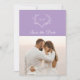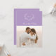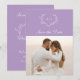 Invitación elegante de boda con foto y fecha de salvado en lila. El diseño presenta una hermosa corona blanca que rodea las iniciales del monograma de la novia y el novio sobre un fondo de color púrpura lila y su foto de compromiso favorita. Personalice con sus nombres, fecha y foto. La parte trasera de la tarjeta presenta una corona de monograma que rodea las iniciales del monograma de la novia y el novio en un fondo de color púrpura lila. Personalice con las iniciales de su monograma, nombres, fecha y lugar de la boda.