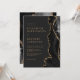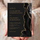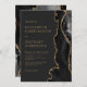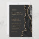 El borde derecho de esta elegante y moderna invitación a la boda incluye un flamante borde de acuarela de color negro adornado con un falso purpurina de oro. El texto del personalizable combina fuentes serias, copperplate y cursivas de color dorado en un fondo negro de pizarra. El reverso presenta un diseño de agate negro y oro a juego.