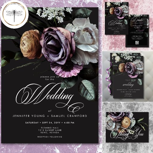 Invitación Elegante Moody Twilight Boda floral silenciado