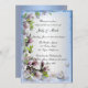 floral de color púrpura con fondo azul y mariposa. Añade un toque especial enviando invitaciones al evento de cena que te llevará hasta tu gran día. Esta invitación a un ensayo de bonito es divertida para todos los invitados. Personalice la tarjeta cambiando el texto en los campos proporcionados delante y atrás. Puede cambiar el estilo de fuente, el tamaño y el color, así como el tipo y estilo de papel.