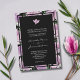 Elegantes tonos violeta, lavanda y blanco, estas invitaciones florales a los bordes de la magnolia presentan los detalles bodas con letras blancas de moda sobre un fondo negro. COINCIDIENDO elementos de nuestra colección.