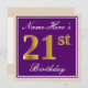 Invitación Elegante, morado, oro falso 21 cumpleaños + nombre
