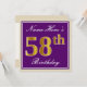 Invitación Elegante, morado, oro falso 58 cumpleaños + nombre