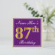 Invitación Elegante, morado, oro falso 87 cumpleaños + nombre