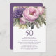 Invitación Elegante Morado Pink Floral 50 cumpleaños