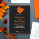 Esta elegante invitación a la ducha nupcial de otoño es perfecta para una moderna ducha nupcial de otoño. El diseño sencillo presenta hojas de arce de otoño con una tipografía blanca y naranja elegante sobre un fondo negro.