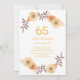 Una elegante y elegante invitación de cumpleaños con una flor naranja y un arreglo de hojas marrones con tipografía moderna de oro sobre un fondo blanco.