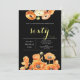Invitación Elegante Naranja negro Floral fiesta de cumpleaños