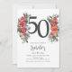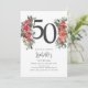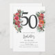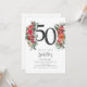 Invitación Elegante Naranja y floral roja 50 cumpleaños