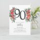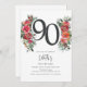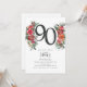 Invitación Elegante Naranja y floral roja 90 cumpleaños