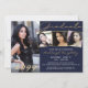 Invitación Elegante Navy Blue Gold Script 4 Photo Graduate