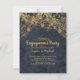 Elegante invitación a la fiesta de compromiso con el azul marino con brillantes luces de cuerdas doradas y chisporroteo. Contáctenos para obtener ayuda sobre la personalización o la correspondencia de productos.