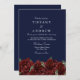 Invitación Elegante Navy Red Rose Leaf Invite a una boda mode