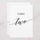 Este elegante número de tabla de dos cuadros de 5 x 7 pulgadas negro es perfecto para un boda sencillo. El diseño neutro cuenta con una tarjeta minimalista decorada con una tipografía romántica y caprichosa. La tarjeta se imprime en la parte delantera y trasera (doble cara). Otros números de tabla de la colección se venden por separado.