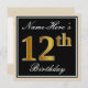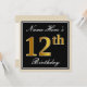 Invitación Elegante, negro, falso oro 12 cumpleaños + nombre