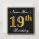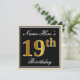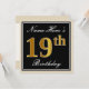 Invitación Elegante, negro, falso oro 19 cumpleaños + nombre