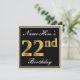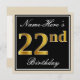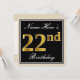 Invitación Elegante, negro, falso oro 22 cumpleaños + nombre