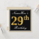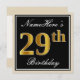 Invitación Elegante, negro, falso oro 29 cumpleaños + nombre