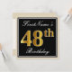 Invitación Elegante, negro, falso oro 48 cumpleaños + nombre
