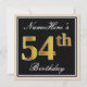 Invitación Elegante, negro, falso oro 54 cumpleaños + nombre
