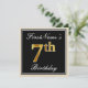 Invitación Elegante, negro, falso oro 7 cumpleaños + nombre